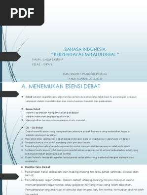 Presentation template containing 3 slides. Semua peserta debat harus mematuhi peraturan yang telah ditetapkan dan disampaikan sebelumnya. Yang termasuk bahasa persatuan dan bahasa negara adalah bahasa indonesia. A short summary of this paper. Debat?debat adalah kegiatan adu argumentasi antara duapihak atau lebih, baik secara perorangan maupunkelompok, dalam mendiskusikan dan memutuskanmasalah dan perbedaan.sma negeri 1 argamakmur. Rpp 1 lembar bina kelas 10 struktur teks negosiasi.docx, unduh rpp 1 lembar bina kelas 10 debat.docx, unduh rpp 1 lembar bina kelas 10 isi debat.docx, unduh Oleh dosen pendidikan 2 diposting pada 17/05/2021. Kamu pasti pernah mendengar kata 'debat'. Berikut ini adalah sedikit penjelasan mengenai teks debat. Bisa jadi, kamu pernah mendengarnya saat sedang ramai pemilihan presiden atau kepala daerah. Daftar isi pengertian teks debat1. Peserta didik tersebut akan difasilitasi untuk mengembangkan kemampuan argumenasi pemecahan masalah dan penyampaian pendapat secara sistematis dan menarik. Pada sudut kanan atas, klik pada tulisan skip this ad.